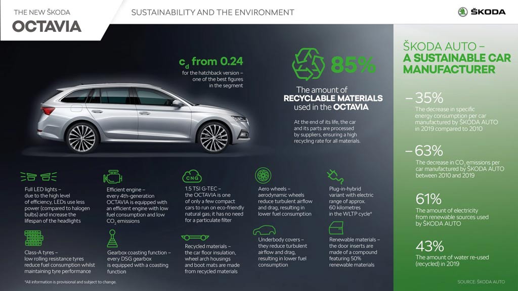 The carmaker uses seat covers made from recycled PET bottles, combining wool with recycled polyester. It is also involved in pilot projects focused on reusing end-of-life glass from cars in the manufacturing process. In its paint shop, Skoda deploys ground limestone, which absorbs residual paint particles, thus eliminating the need for water in a process known as ‘dry separation’.