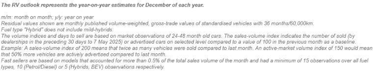 %RVs were roughly stable in May, with a very slight decrease. The 2% absolute RV growth was mainly because more expensive cars were sold this month. List prices increased by 2.3% compared to April.