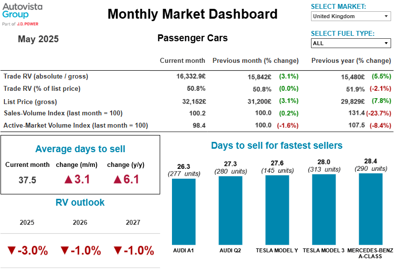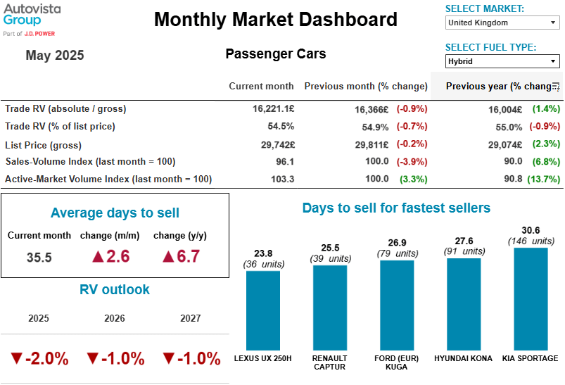 On average, it took 37.5 days to sell a used car in May, an increase of 3.1 days month on month. Hybrid cars emerged as the fastest-selling fuel type in the UK, with an average sales time of 35.5 days. They also retained the largest percentage of their original list price after three years.