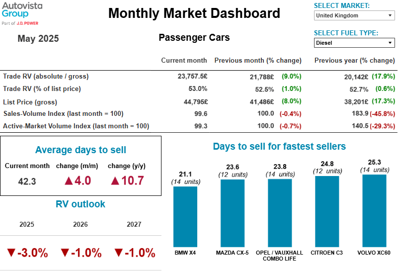 Diesel vehicles continued to be the fastest-selling powertrain, taking 58.9 days on average to sell last month. This was followed by plug-in hybrids (PHEVs) at 65.9 days, petrol vehicles at 67.2 days and full hybrids (HEV) at 67.8 days. Battery-electric vehicles (BEVs) took the longest amount of time to sell at 81.1 days.