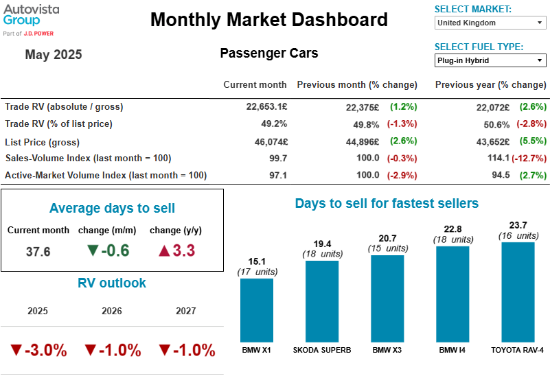 ‘Overall, HEV %RVs decreased slightly in May, as increasingly expensive vehicles were sold. Newer and more expensive models in this category do not hold values as well as older hybrid cars, which were on the market when the technology was still emerging,’ commented Ludovic Percier, Autovista Group’s senior RV analyst for France.